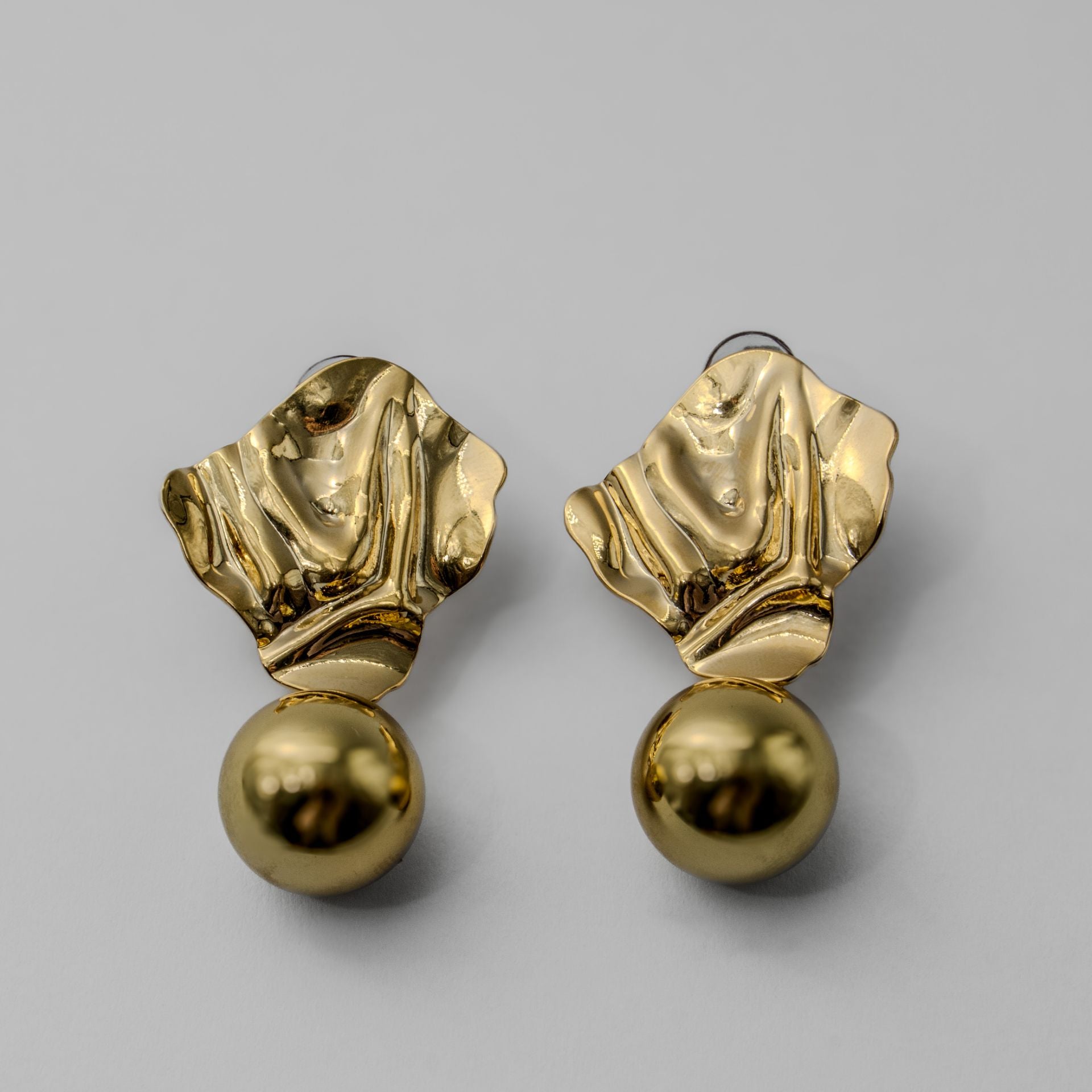 ARETE DORADO APLANADO ONDULADO CON BOLA COLGANTE