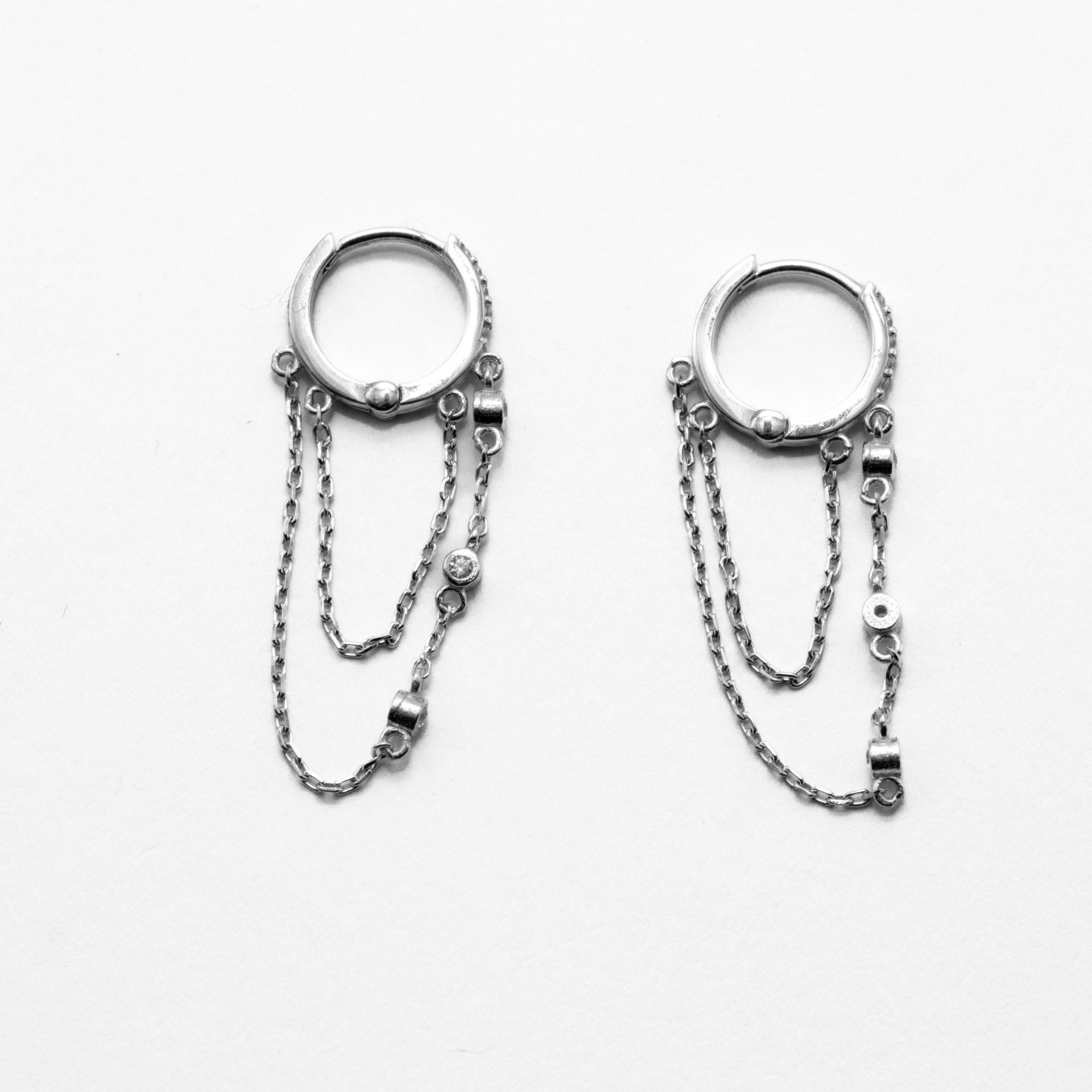 HUGGIES DE PLATA .925 CON CADENAS Y CIRCONIAS
