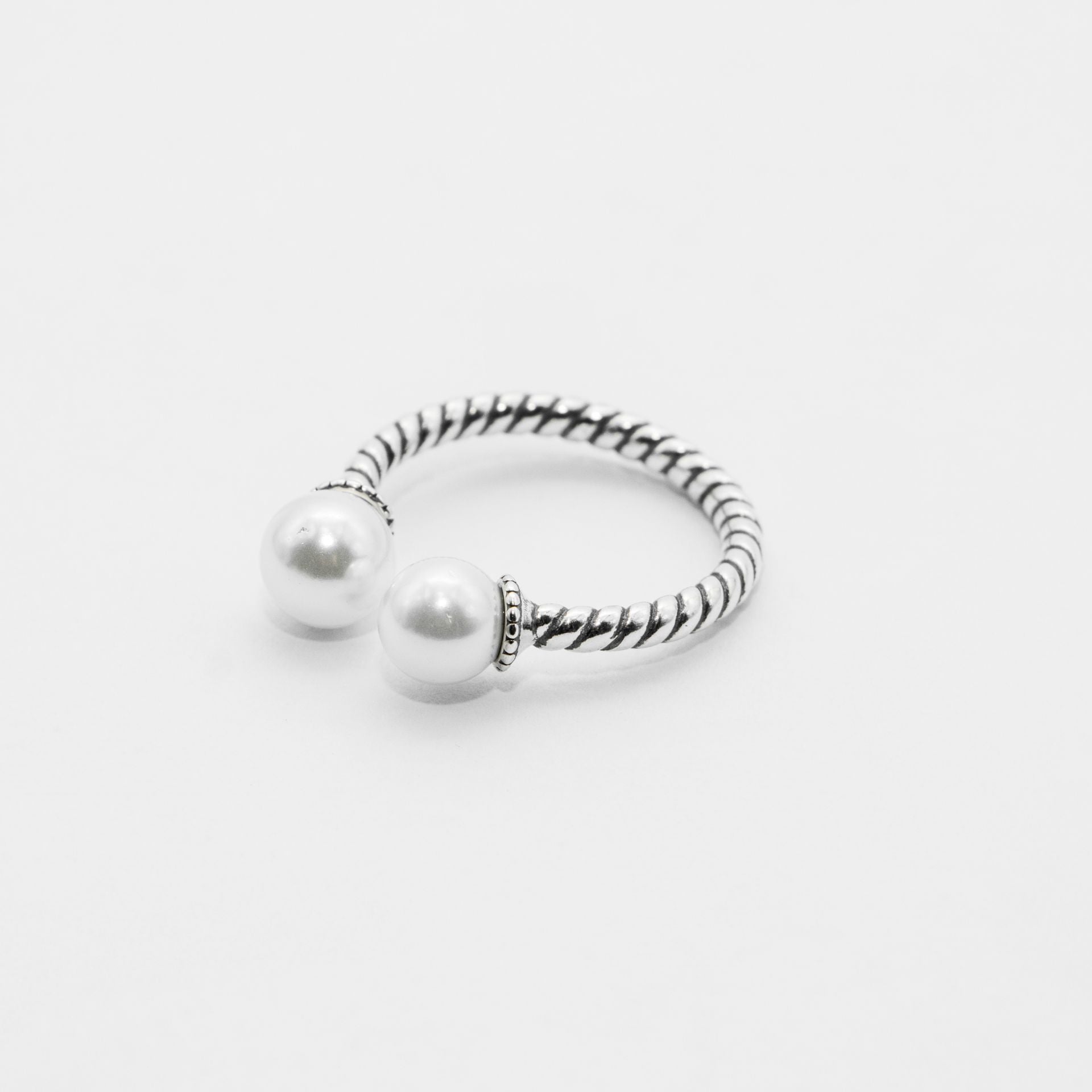 ANILLO AJUSTABLE PLATA .925 CON 2 PERLAS EN LOS EXTREMOS