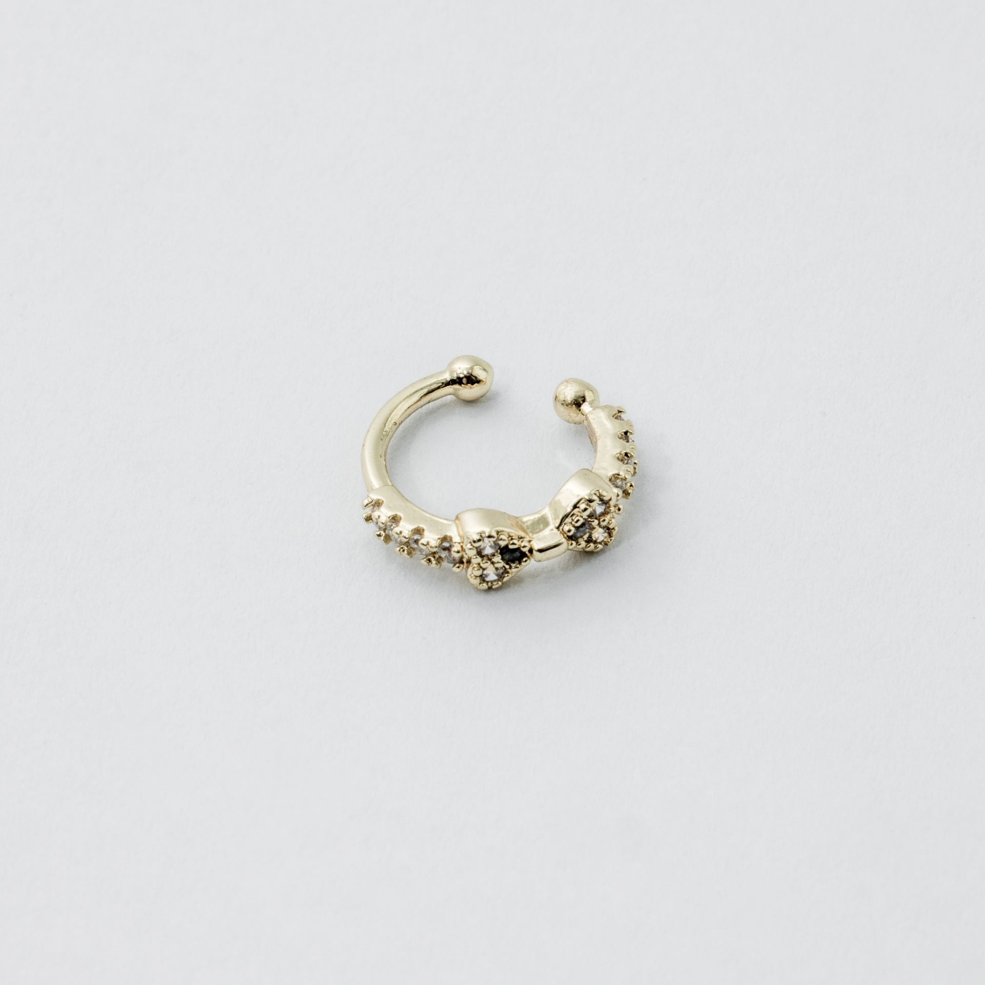 EAR CUFF DORADO 2 CORAZONES LLENO CIRCONIAS