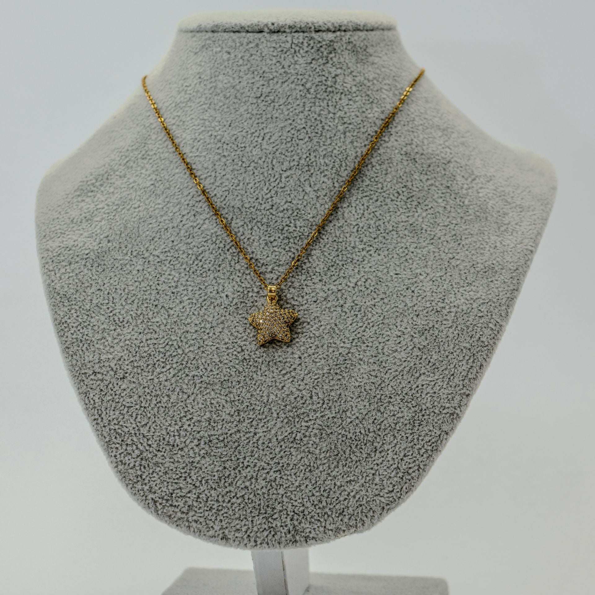 COLLAR DORADO ACERO INOXIDABLE DIJE ESTRELLA INFLADA LLENA DE CIRCONIAS BLANCAS