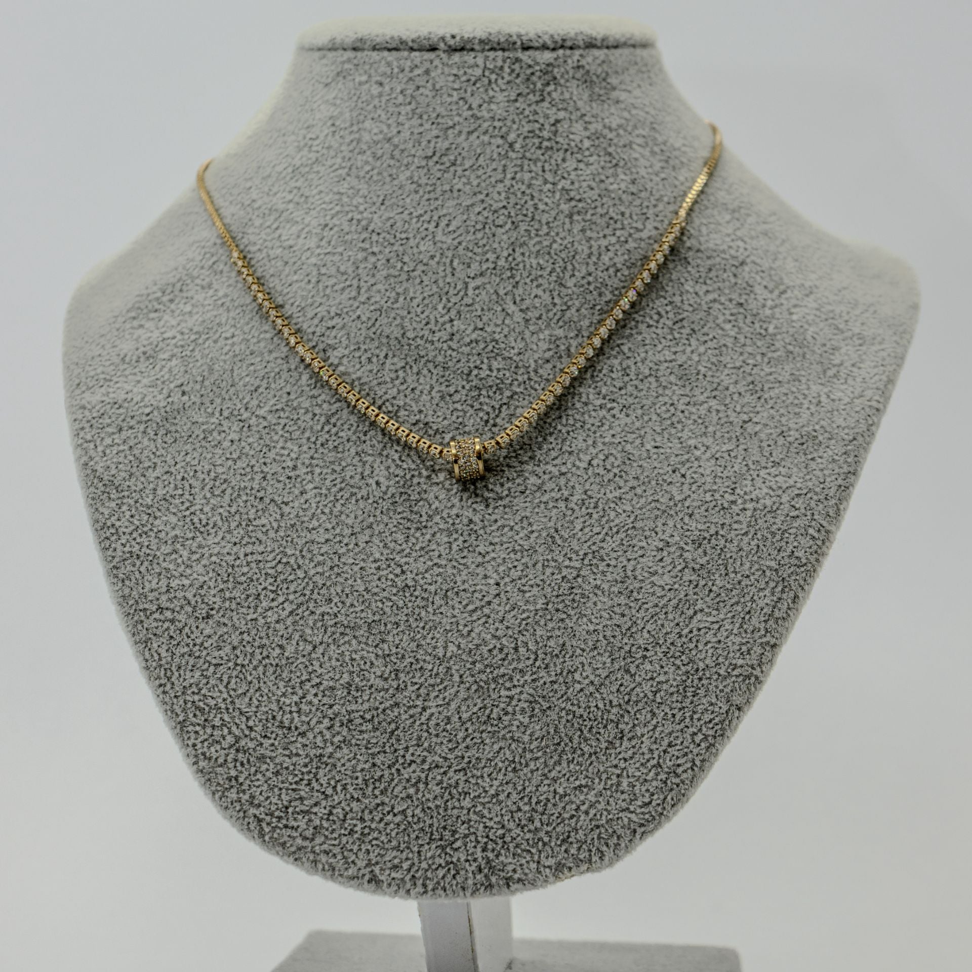 COLLAR DORADA CHAPA 18K AJUSTABLE DIJE BARRIL LLENO DE CIRCONIAS BLANCAS