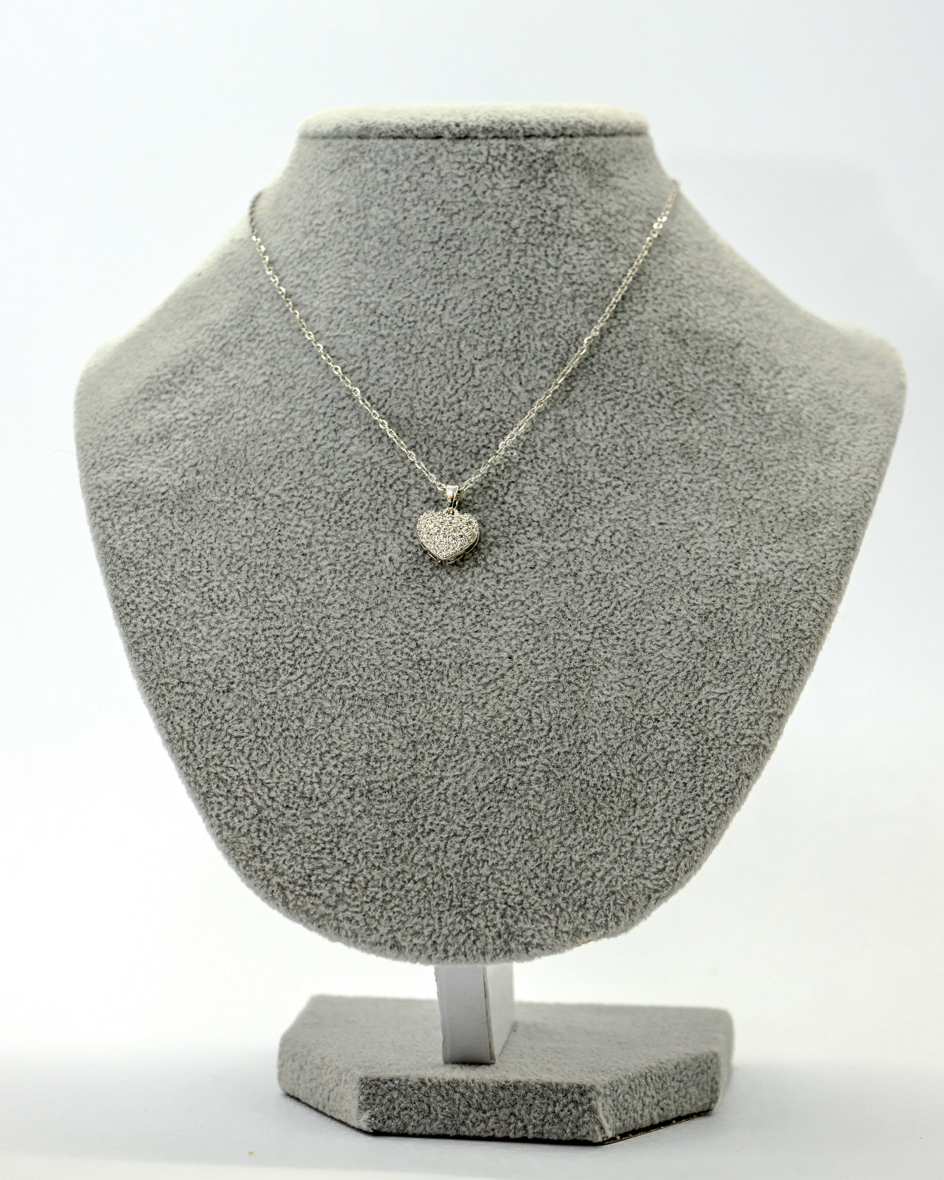 COLLAR PLATEADO DE ACERO INOXIDABLE DIJE DE CORAZON LLENO DE CIRCONIAS