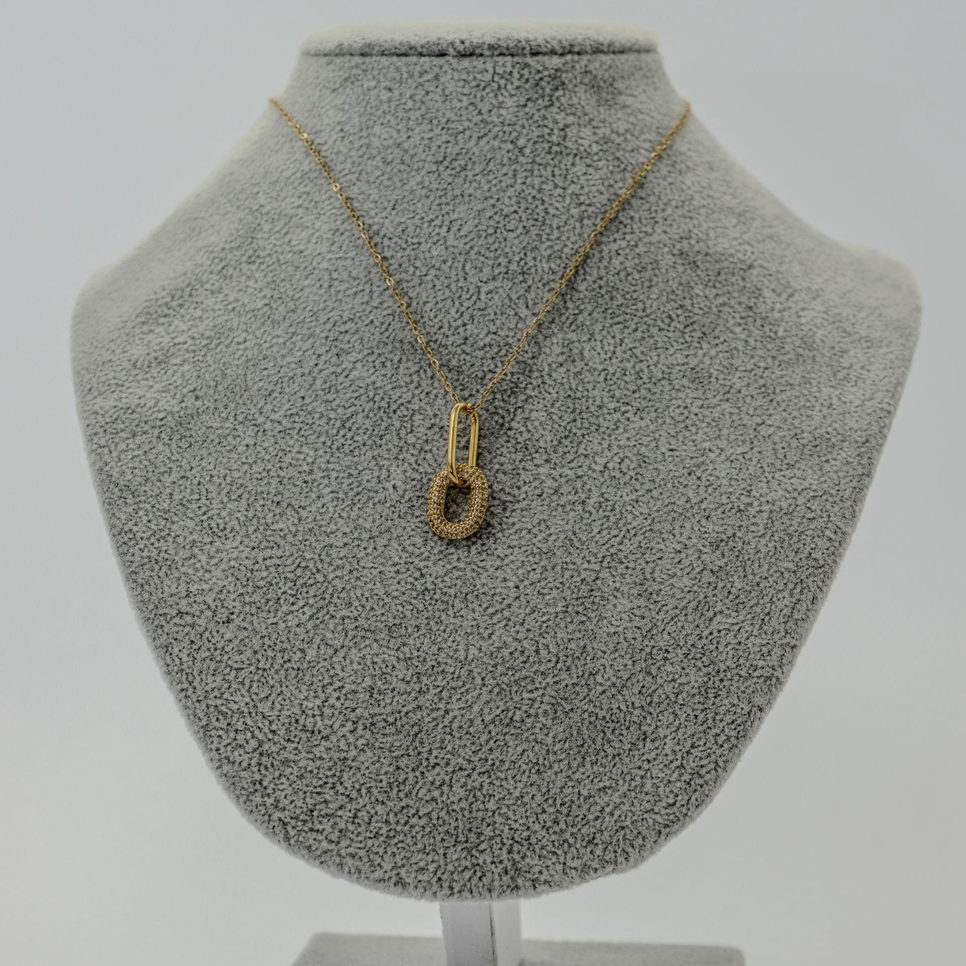 COLLAR DORADO CHAPA 18K DIJE DOBLE OVALO LISO LLENO DE CIRCONIAS BLANCAS